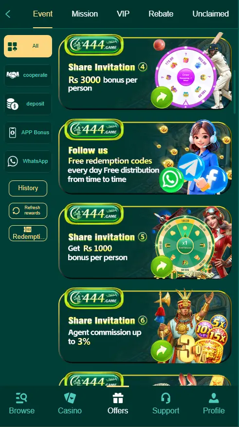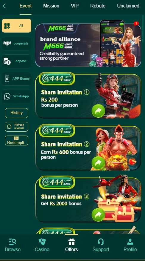 Every valid friend sign-up gives an Invitation Bonus in the C444 Game. It helps boost initial balances quickly.