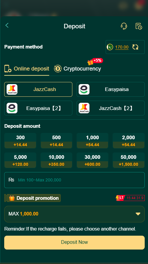 Users can deposit and withdraw using local banks and e-wallets. C444 Game supports EasyPaisa, JazzCash, and bank transfers for fast and hassle-free transactions.